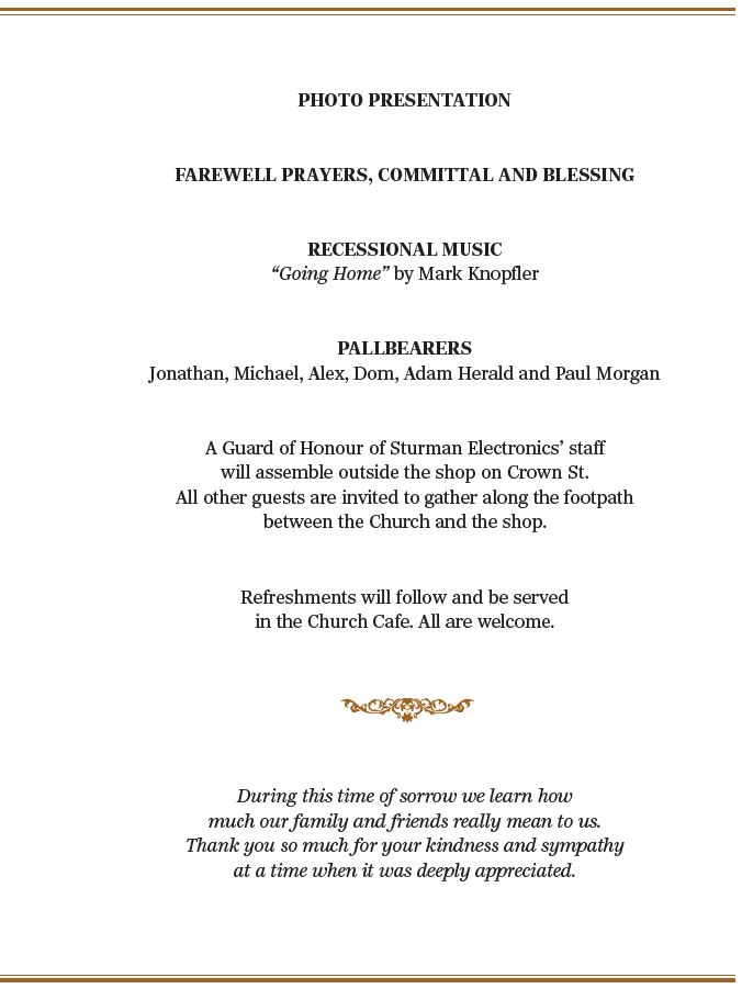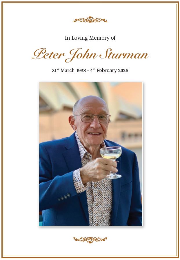 The live stream of Peter Sturman’s funeral service will start at 3pm on Friday 13 February 2026.